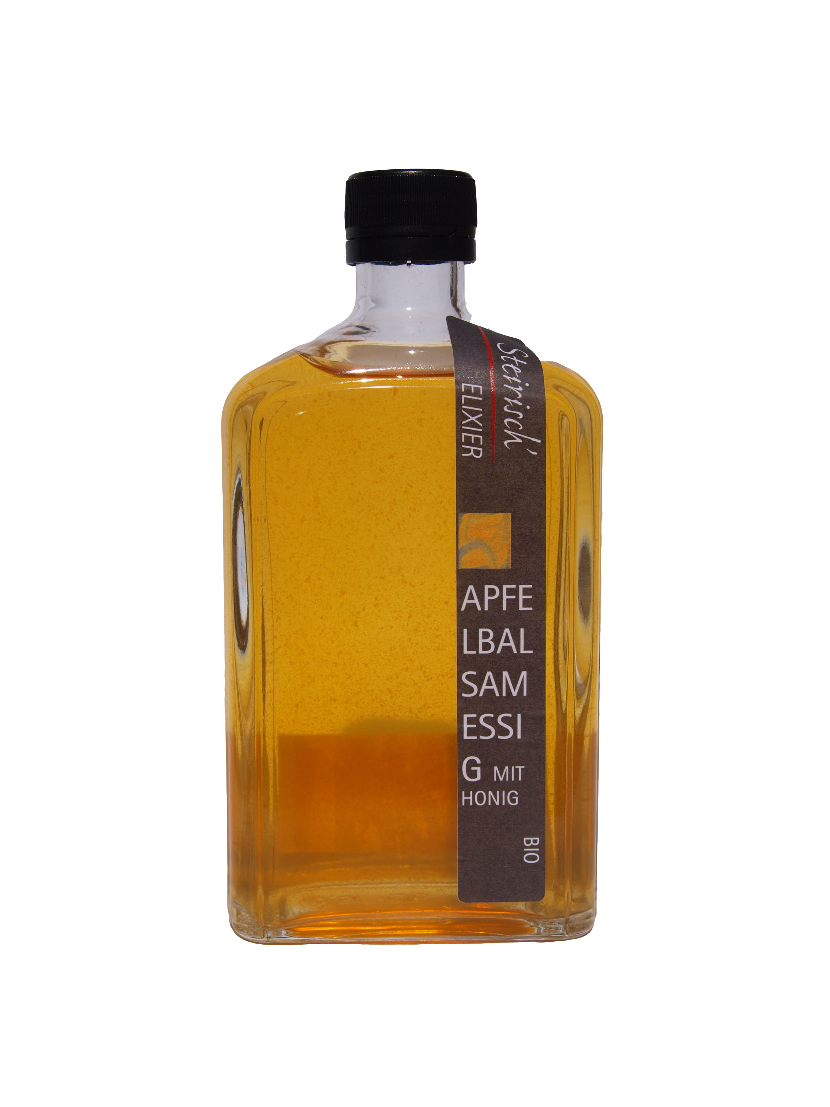 Gärungsessig aus alten Apfelsorten, mit einer Apfelsaft-Reduktion und Honig verfeinert